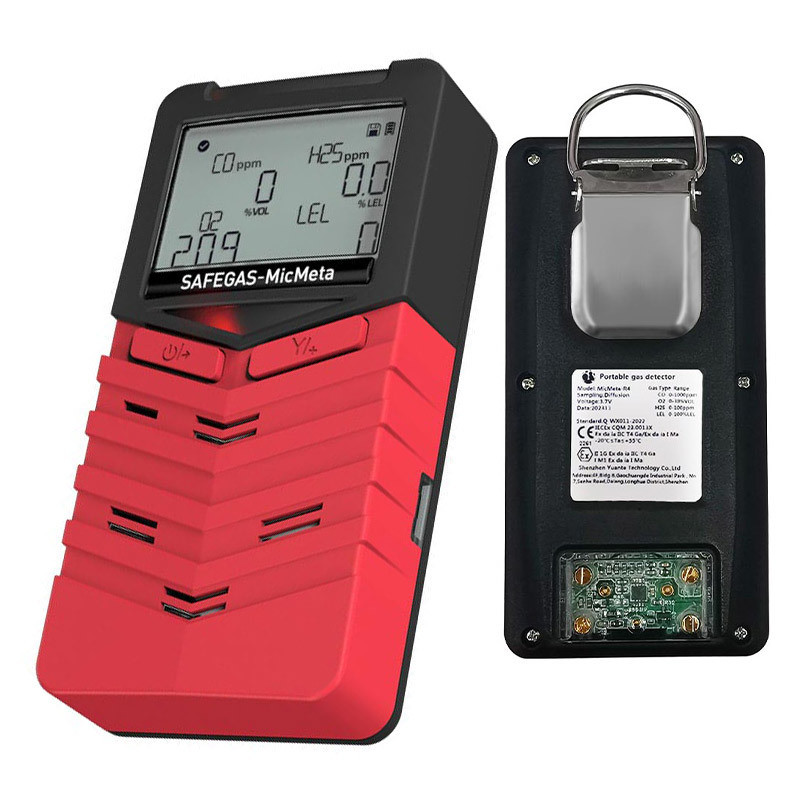 The Safegas Portable Multi Gas Detector is a lightweight, IECEX certified device with IP68 drop resistance featuring diffusion suction and a convenient back clip.